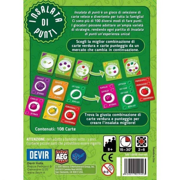 Insalata di Punti è un rapido gioco di carte basato su una meccanica di draft. Ogni