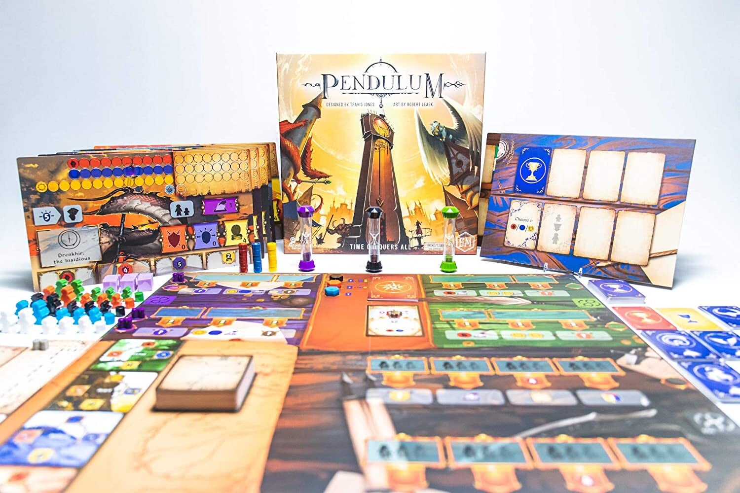 In Pendulum, ogni giocatore è un potente nobile in lotta per succedere al Re Senza Tempo come nuovo sovrano di Dünya. Ciascun nobile in gioco è unico. I nobili dovranno gestire i propri lavoratori, elaborare stratagemmi ed espandere le province del proprio territorio in tempo reale per poter ottenere risorse ed avanzare lungo i quattro tracciati della vittoria: potere, prestigio, popolarità e l’Obiettivo Leggendario. Il tuo tempo deve essere usato con saggezza, perché colui che si dimostrerà il più adatto a governare durante il Consiglio finale verrà dichiarato il nuovo Sovrano Senza Tempo!