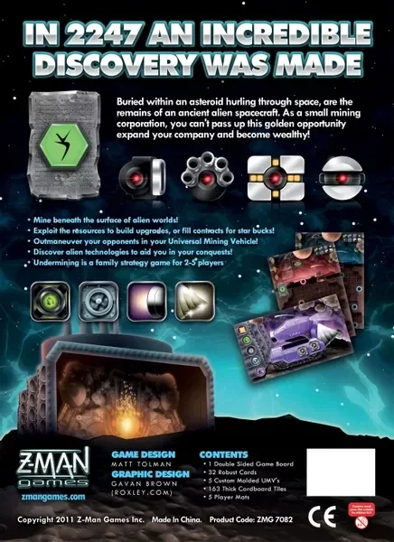 In Undermining impersonerete dei minatori spaziali, dove alla guida del vostro Universal Mining Veichle (UMV) inizierete una gara con i vostri avversari a chi sarà più veloce nel reperire i minerali che permetteranno di incassare i vari contratti. Oltre alle varie risorse (uranio, titanio, diamanti ed il potentissimo niobio) sul pianeta troveremo anche delle potentissime tecnologie aliene (carte aliene), lasciate da un'antica e potente civiltà.