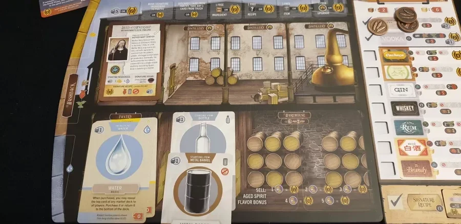 Distilled è un gioco di carte strategico altamente tematico sulla creazione di alcolici in una distilleria, con gestione delle risorse ed elementi di fortuna. Nel gioco, hai ereditato una distilleria e speri di ottenere un giorno il titolo di maestro distillatore acquistando beni, costruendo la tua distilleria e creando gli alcolici più famosi del mondo. Usa le carte per acquistare nuovi ingredienti e investi in potenziamenti alla tua distilleria, il tutto mentre alla fine distilli lo spirito e lo mandi al magazzino. Una volta nel magazzino, invecchia il tuo spirito per esaltarne il sapore e imbottiglialo per venderlo con maggiori profitti! Ottieni il titolo di Master Distiller ottenendo il maggior numero di punti vittoria alla fine del gioco. I punti si ottengono distillando e vendendo alcolici.