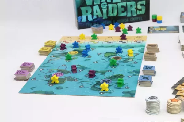 Wreck Raiders è un innovativo sistema di collocamento dei lavoratori che tira dadi. Scegli un dado dalla piscina, quindi invia uno dei tuoi sommozzatori in qualsiasi punto del tabellone con quel numero. Ma attenzione: lo spot che scegli aiuterà qualsiasi subacqueo negli spot accanto a te, siano essi amichevoli o meno. Rischierai di far entrare un rivale nel tuo bottino per ottenere quel tesoro che desideri, o riuscirai a trovare un modo per accaparrarti del bottino extra?
