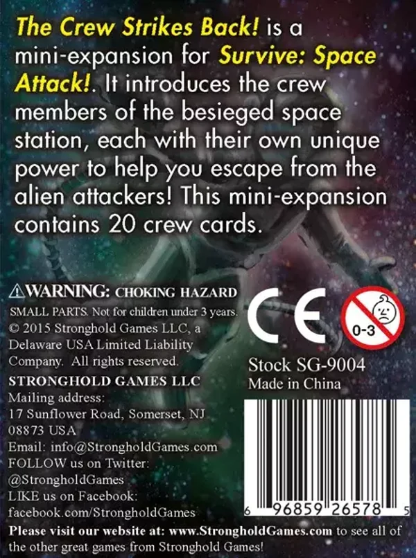 una mini-espansione per Survive: Space Attack!, introduce i membri dell'equipaggio della stazione spaziale assediata, ognuno con il proprio potere unico per aiutarti a fuggire dagli attaccanti alieni. Questa mini-espansione contiene venti carte equipaggio.