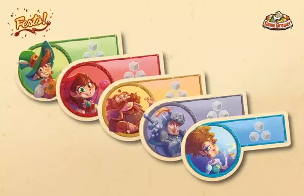 È una grande festa nel magico regno di Turinia, dove assumi il ruolo di un halfling sempre affamato che va al mercato per raccogliere ogni sorta di ingredienti meravigliosi da elfi, nani, folletti, troll, orchi e maghi, quindi tu può cucinare piatti che faranno leccare le dita a tutte le creature del regno. In ciascuno dei quattro turni di Festo!, i giocatori cercano di raccogliere quanti più ingredienti possibile posizionando i loro servitori in base alle diverse razze del gioco, ma ogni turno è composto da due fasi in cui i giocatori lanciano tre dadi che determinano se le razze sono disponibile questo turno oppure no. Alcune razze potrebbero essere totalmente non disponibili per questo motivo, quindi i giocatori devono decidere quanti dei loro servitori vogliono piazzare durante ogni fase. Una volta fatto ciò, le maggioranze determinano chi ottiene cosa. Chi sarà il più intelligente di tutti gli halfling? Gioca Festo! e scoprilo!