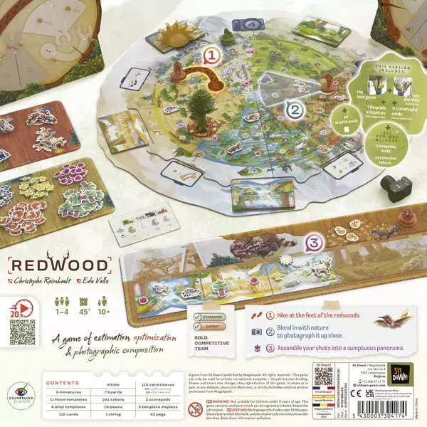 Redwood è un gioco dove dovrete stimare il movimento e l'angolo di visuale dove dovrete scattare foto di animali selvatici per comporre il panorama più bello. Il gioco è da 1 a 4 giocatori, dai 10 anni in su e le partite durano circa 45-60 minuti.