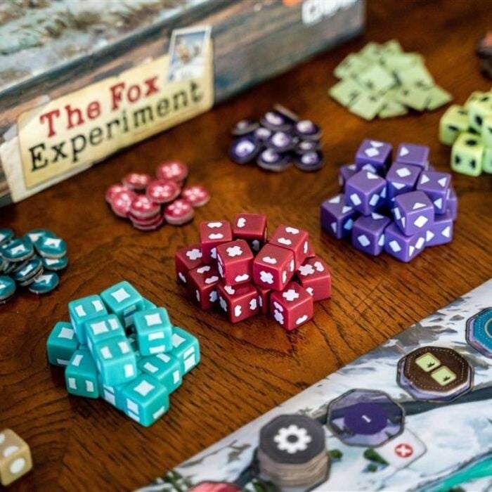 In The Fox Experiment alleverai le tue volpi addomesticate. In ogni round selezionerai una coppia di genitori volpe che hanno determinati tratti. Otterrai quei dadi tratto specifici, li lancerai, quindi proverai a spostarli per creare simboli tratto completi che poi contrassegnerai sulla tua carta cucciolo. Otterrai quindi gettoni tratto a seconda di quanti tratti hai contrassegnato che utilizzerai per aggiornare i binari sulla tua plancia giocatore personale.