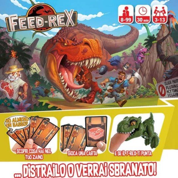 Feed-Rex di Red Glove è un fantastico gioco da tavolo della categoria party. Ideato da Luca Bellini e Davide Ardizzone e disponibile nel nostro catalogo in italiano, è giocabile in 3-13 giocatori. La durata di una partita è di circa 30 minuti. Si raccomanda per giocatori da tavolo di almeno 8 anni.
