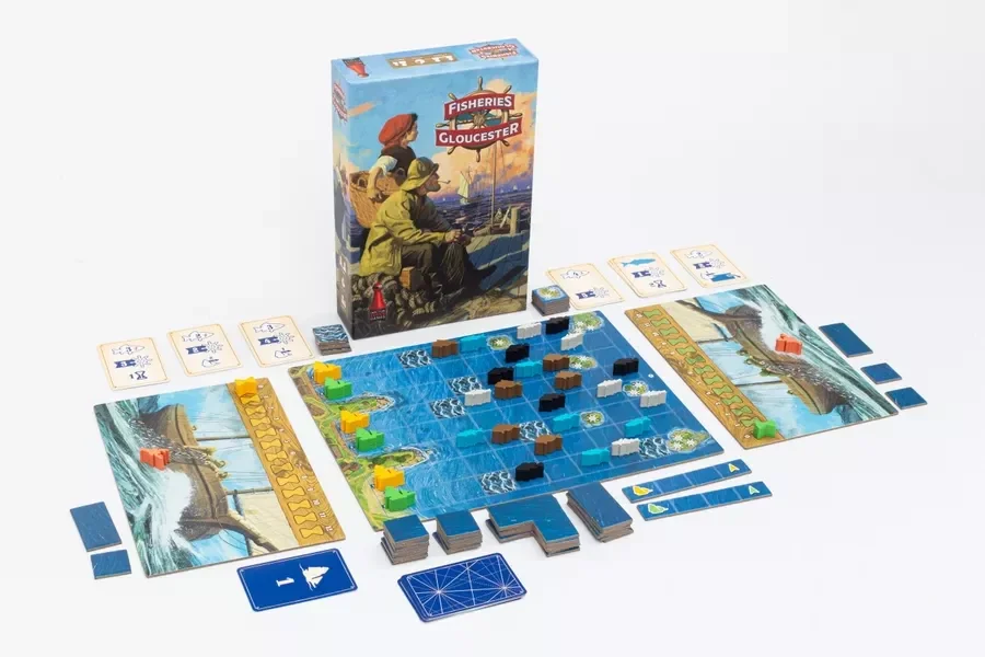 La partita a due giocatori Fisheries of Gloucester dura sei "giorni" (turni). Ogni giorno, i giocatori hanno un determinato numero di ore da trascorrere per eseguire varie azioni, come tracciare la rotta, navigare sulle barche e catturare pesci. Ogni giocatore ha una flotta di tre barche che possono essere avanzate "tracciando prima una rotta" (posizionando una tessera oceano, che ha varie forme polinomiali). Una volta impostati i percorsi, i giocatori possono spostare le loro barche lungo il percorso, gareggiando contro altre barche per trovare i migliori punti di pesca.