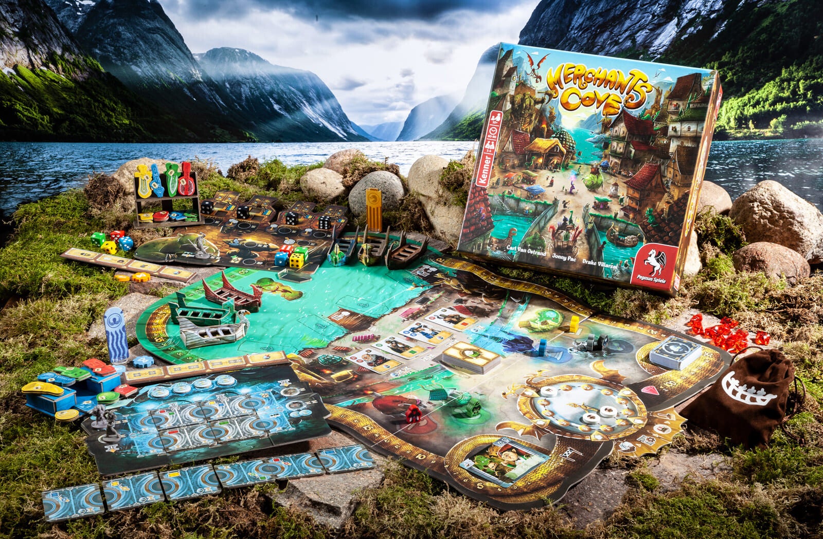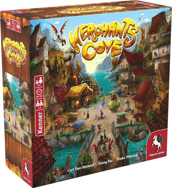 Benvenuto a terra! Merchants Cove è un eurogame altamente asimmetrico in cui ogni giocatore assume il ruolo di un diverso mercante fantasy con un negozio unico. I mercanti si contendono la vendita delle loro merci agli avventurieri in arrivo ai moli della baia, i mercati più famosi dei Cinque Regni. Ogni giocatore utilizza la propria serie di componenti specifici per ruolo e meccaniche di gioco per produrre i propri prodotti, aumentare l'efficienza del proprio negozio e, soprattutto, arricchirsi! Sebbene i mercanti lavorino in modo indipendente nei loro negozi specializzati, competono tra loro per attirare clienti, influenzare le richieste di merci e assicurarsi sponsorizzazioni dalle quattro sale delle fazioni. Per ottenere un vantaggio, i commercianti possono assumere cittadini locali che lavorino nei loro negozi come personale. Oppure, se osano tagliare gli angoli, possono trarre vantaggio dal covo corrotto di ladri, ma a quale costo? Dopo tre giorni di vendita ai mercati, il mercante più ricco sarà dichiarato vincitore!