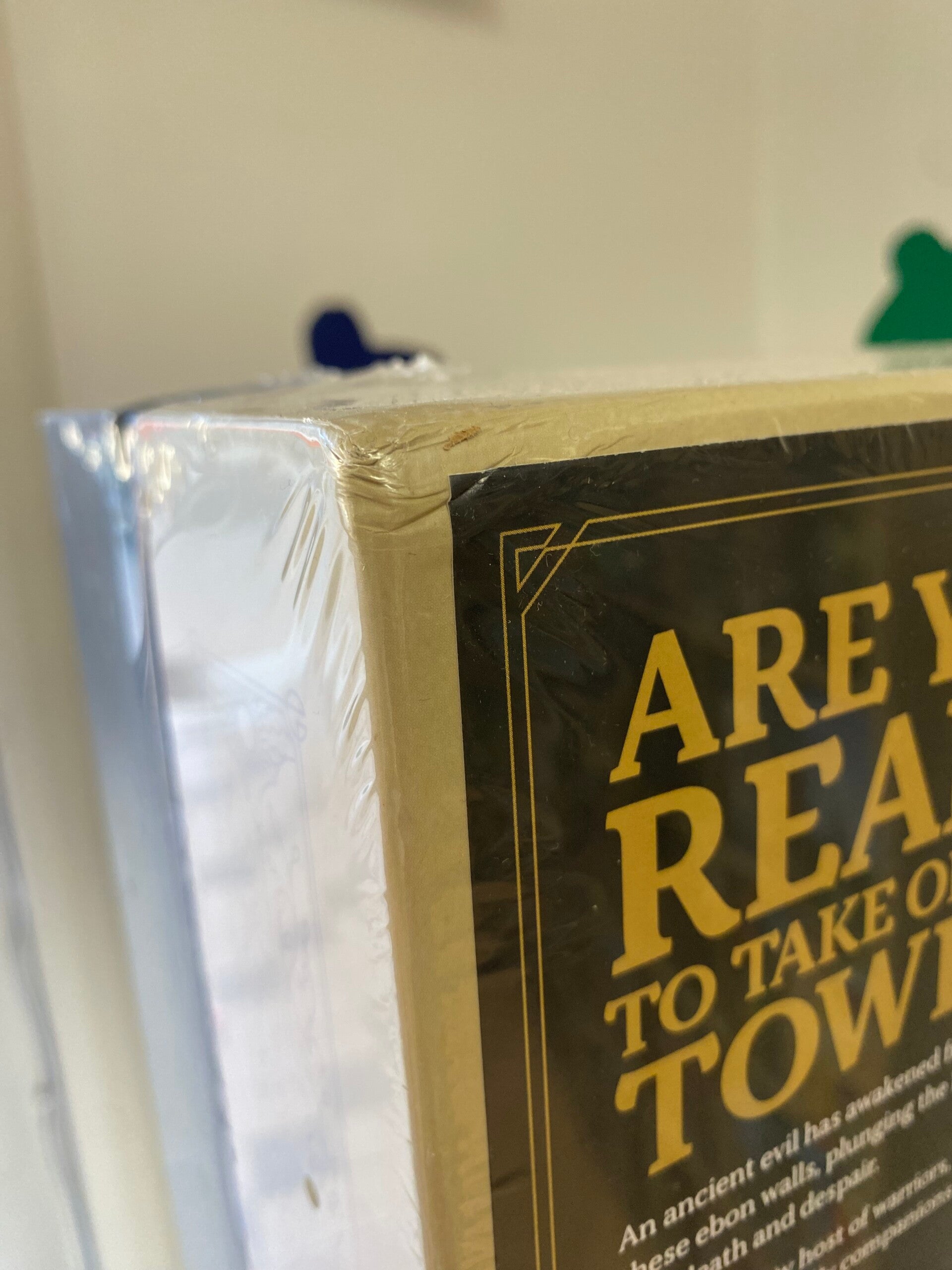 For an age, the tower lay in ruins. Unbeknownst to the people of the realm, a great evil stirred in its bowels. It started with strange sightings: a flock of crows flying in circles until they dropped from the sky, the lake frozen solid in the height of summer. In time, they could not deny that which they most feared. The evil had not been vanquished. The darkness would soon fall again. The tower will rise. A "sequel" to the 1981 grail game, Return to Dark Tower is a game for 1-4 players who take the role of heroes. Together, they gather resources, cleanse buildings, defeat monsters, and undertake quests to build up their strength and discern what foe ultimately awaits them. When the heroes face the tower, the game shifts into its dramatic second act, where the players have one chance to defeat the enemy once and for all. The game features both cooperative and competitive modes of play. The game features traditional game mechanisms, such as engine building and resource management, paired with a technological interface unlike any seen before in games, including the titular tower, which holds more than a few secrets. —description from the publisher