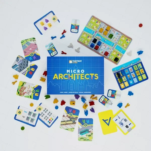 Micro Architects è un gioco di costruzione di città per 1-4 giocatori che richiede 30-60 minuti per giocare. In qualità di architetto cittadino, il tuo ruolo è pianificare il layout della tua città, costruire punti di riferimento, fornire servizi, gestire i residenti e affrontare eventi casuali che influenzano la tua città.