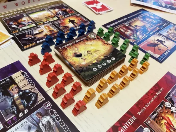 Durante la fase di azione, ogni giocatore esegue un'azione, la più importante delle quali è inviare i propri agenti a infiltrarsi in istituzioni politiche, finanziarie e di ricerca rappresentate da carte obiettivo nella Zona di Infiltrazione. Devi correre per le carte obiettivo poiché gli altri giocatori possono inviare più agenti per intercettare la carta di cui hanno bisogno. I giocatori possono anche avanzare verso progetti di World Domination, tra cui Comintern, Unified Nations, Spyware e lo stesso Deep State, che offrono ai giocatori vantaggi tangibili nel gioco. Potrebbero anche scegliere di effettuare operazioni segrete che forniscono molta influenza richiedendo al contempo il sacrificio di agenti.