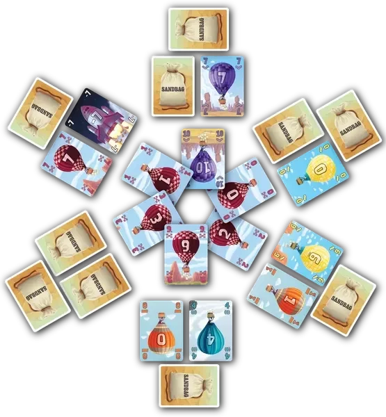 Sandbag è un gioco di presa in cui devi evitare prese, manipolare la briscola e riconfigurare la tua mano di carte. In ciascuno dei tre round, configuri il tuo cestino con due carte scoperte; il colore più comune tra le carte di tutti i giocatori è il seme di Trump. Ad ogni presa, i giocatori giocano dalla loro mano, giocano un sacco di sabbia (per sluffare, cioè per evitare di vincere la presa), oppure giocano una delle carte scoperte dei loro avversari. Durante il round è possibile che la briscola cambi poiché il numero e il tipo di carte scoperte vengono scambiate con sacchi di sabbia coperti. Ad ogni round sono in gioco cinque carte razzo che valgono punti negativi e tu vuoi vincerle evitando le carte sacco di sabbia perché alla fine vince il giocatore con il punteggio più basso.