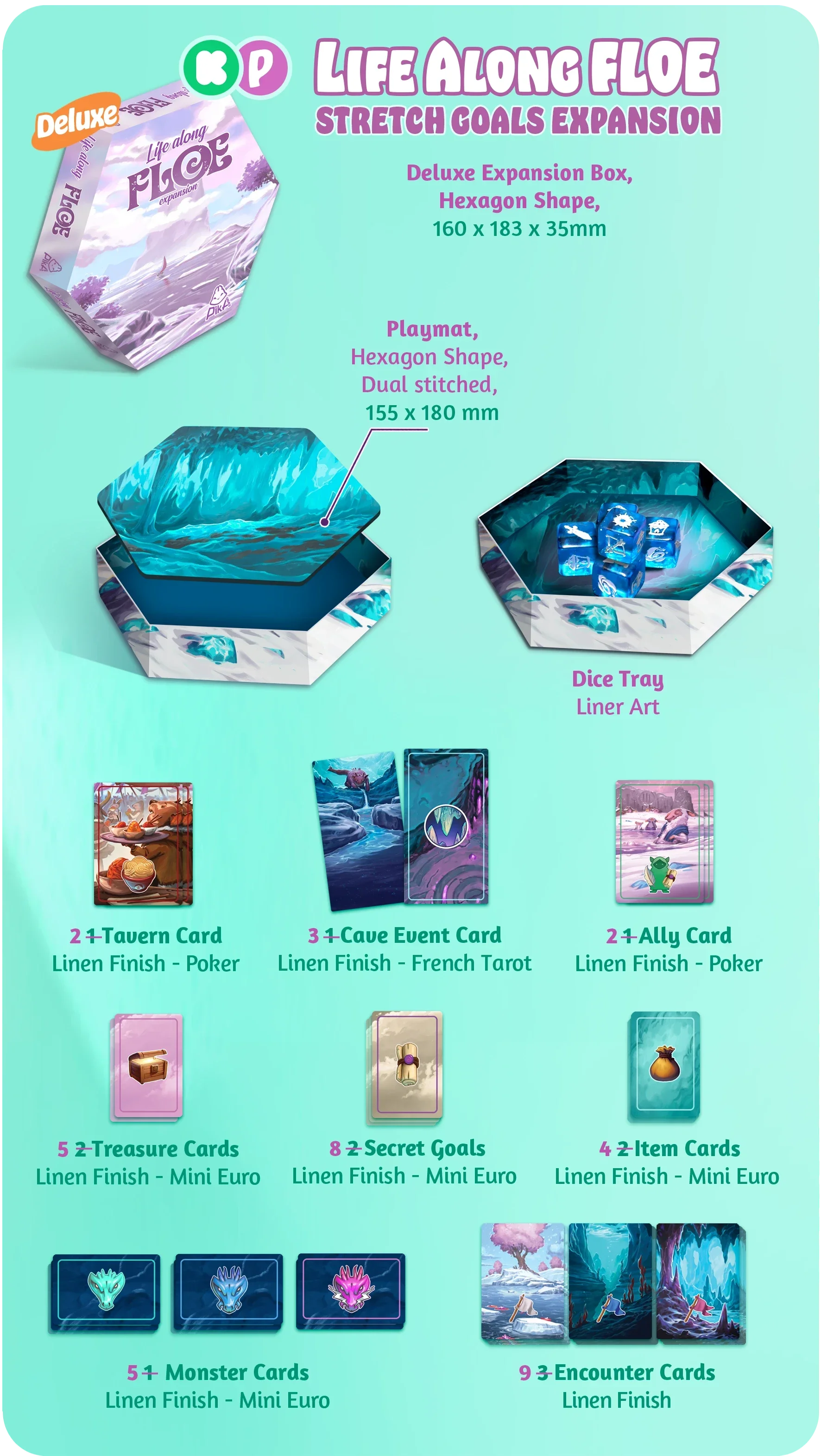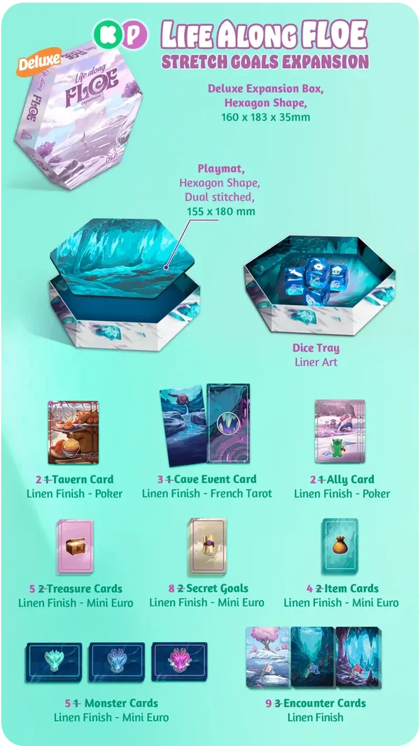 Questo pacchetto deluxe include l'esclusiva edizione Deluxe di FLOE nella scatola grande, l'espansione Life Along FLOE e la colonna sonora digitale, e tutti gli Stretch della campagna.