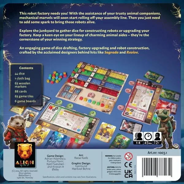 Questa fabbrica di robot ha bisogno di te! Con l'aiuto dei tuoi fidati compagni animali, presto le meraviglie meccaniche inizieranno a uscire dalla tua catena di montaggio, quindi devi solo aggiungere un po' di scintilla per dare vita a quei robot. Esplora la discarica per raccogliere dadi per costruire robot o potenziare la tua fabbrica. Tieni d'occhio la tua schiera di affascinanti aiutanti animali; sono la pietra angolare della tua strategia vincente.