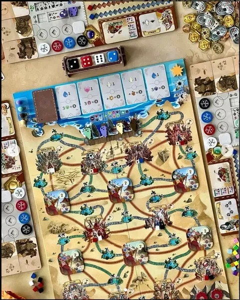 In Sand, i giocatori si mettono nei panni di questi intrepidi viaggiatori del deserto che percorrono i sentieri del tabellone e visitano le diverse città. Raccolgono merci per portarle in altri luoghi e guadagnano così oro per il servizio di trasporto. Attraversano le dune sul dorso dei loro fedeli bruchi, che, curati, cresceranno e aiuteranno i giocatori a completare i loro compiti in modo più efficace. Lungo il percorso verranno affiancati da compagni disponibili e gli verranno affidate missioni che, se portate a termine, porteranno buoni benefici alla fine del viaggio. Aiuta le piante a rimettere radici, e forse c'è ancora qualche speranza per questo luogo desolato...