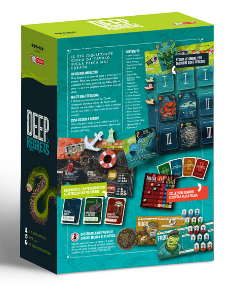 Un’espansione da incubo per Deep Regrets, con 18 nuove carte Pesce da aggiungere al gioco base. Ognuna di esse presenta un numero preoccupante di tentacoli e l’immancabile presenza del Grande Antico preferito da tutti. Perfettamente compatibile anche con la modalità solitario.
