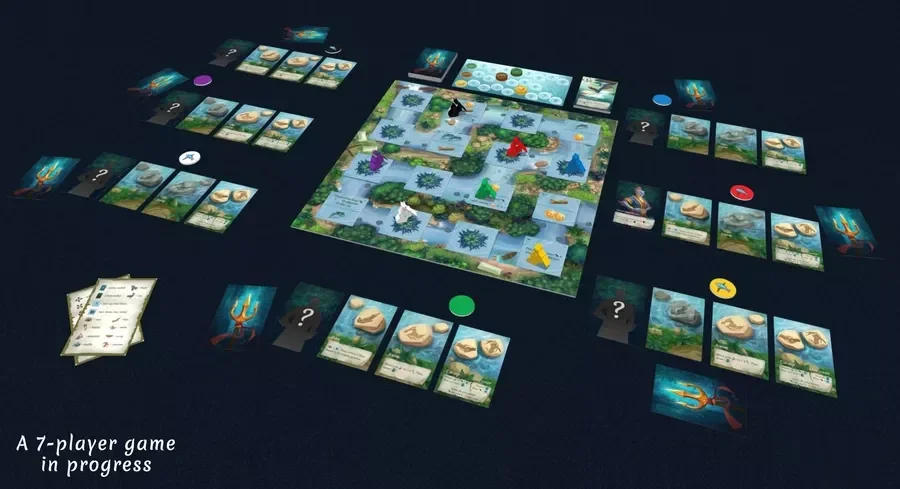 Riverbed Hunt è un gioco da tavolo di strategia deduttiva leggero per 3-9 giocatori.