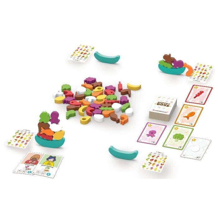 - Scopri gli Alimenti: Ogni turno, i giocatori rivelano quali Alimenti sono disponibili al buffet.