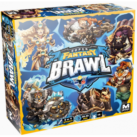 Super Fantasy Brawl è un gioco da tavolo competitivo di miniature, divertente e frenetico. I giocatori selezionano una squadra di tre campioni e combinano le loro carte azione uniche per creare un mazzo sinergico. Il gioco è senza fazioni, quindi i giocatori possono scegliere qualsiasi combinazione di campioni desiderino. A ogni turno, i giocatori usano la loro mano di carte azione per manovrare, attaccare, spostare i nemici e rivendicare obiettivi per ottenere punti vittoria.
