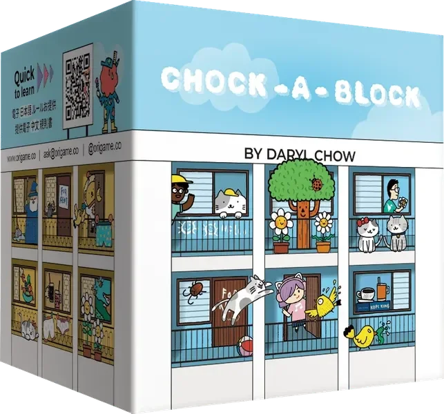 In Chock-A-Block, i giocatori costruiscono coloratissimi palazzi pieni di vita.