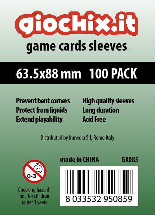 100 Buste protettive trasparenti per carte 63.5x88mm o più piccole. Tutte le bustine sono prive di composti acidi e proteggeranno le tue carte nel tempo da abrasioni, liquidi, grasso e altri problemi.
