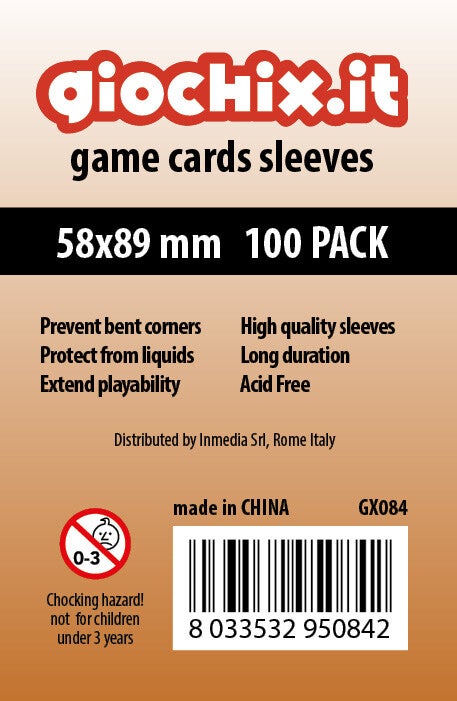 100 Buste protettive trasparenti per carte 58x89 mm o più piccole. Tutte le bustine sono prive di composti acidi e proteggeranno le tue carte nel tempo da abrasioni, liquidi, grasso e altri problemi.