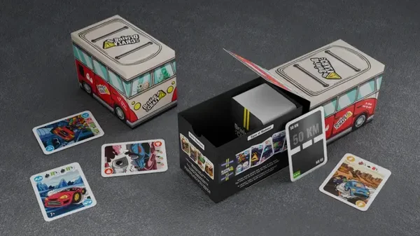 In questo veloce gioco di carte per famiglie, gareggiate per essere i primi ad arrivare alla casa delle vacanze e ad accaparrarvi la camera da letto più grande! I giocatori pescano e scartano carte per essere i primi a raggiungere esattamente 1000 km in punti carta. Il gioco include carte distanza e carte azione per avanzare. Ma fate attenzione, anche i vostri avversari possono giocarvi azioni negative.