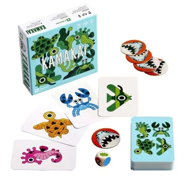 Kamakai è un gioco in cui i giocatori collezionano carte di vari animali marini, cercando di ottenere tutte e quattro le specie nella propria fila di carte pescandole in cima al mazzo o alla pila degli scarti. I giocatori possono riorganizzare la propria fila quando vogliono, posizionando una delle carte accanto a una pedina squalo.