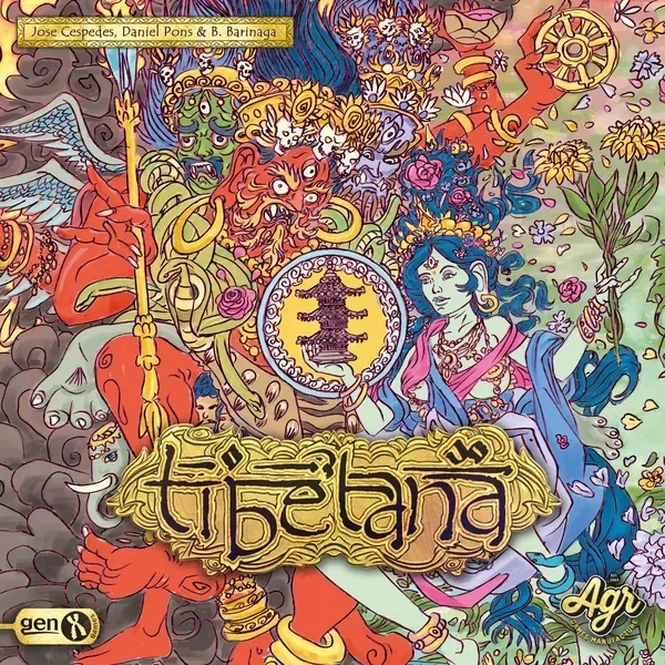 In Tibetana, raccogli energia dai territori per erigere nuovi insediamenti, reagire agli effetti delle divinità instabili e fare pressione sull'avversario per ostacolarne la crescita. L'obiettivo è costruire tre pagode di cinque piani su una plancia esagonale con diversi territori che rappresentano le terre della mitologia tibetana prima che il tuo avversario possa farlo.