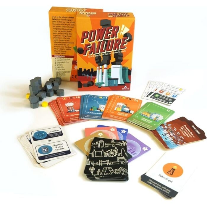 Power Failure è un gioco di costruzione di tableau e destrezza sulla produzione di energia. I giocatori eseguono 3 azioni a turno per costruire e utilizzare diversi tipi di centrali elettriche. A seconda delle loro azioni e del tipo di centrali che gestiscono, saranno costretti ad accatastare blocchi sulla Carbon Tower, rischiando conseguenze per tutti quando la torre crolla. I giocatori devono gestire il rischio mentre corrono per completare i contratti energetici.