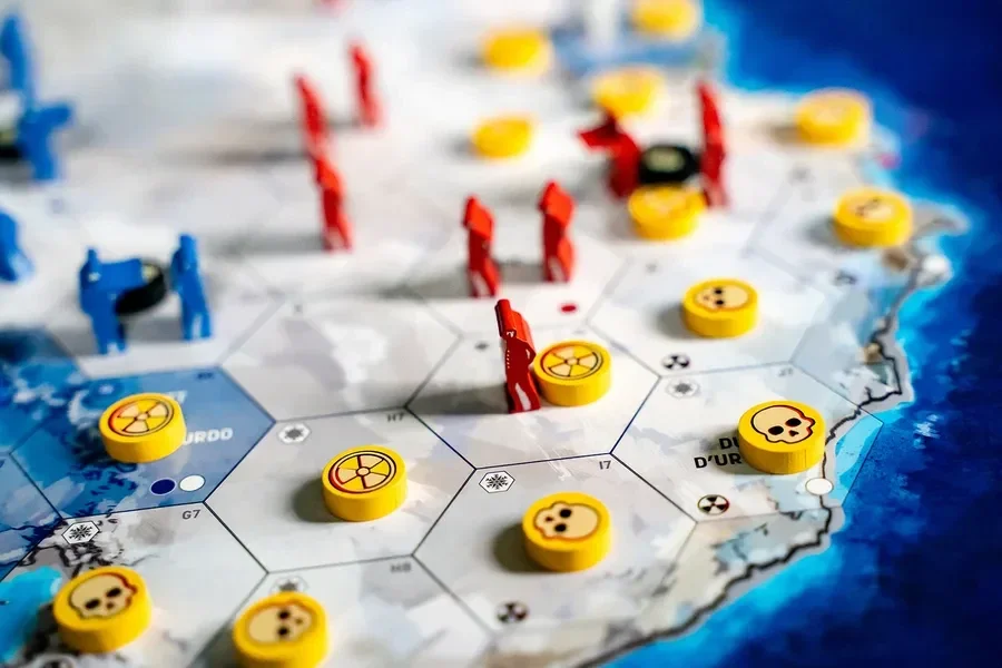 In Meltwater, due giocatori prendono il comando dei resti in frantumi delle superpotenze, in lotta per il controllo del ghiaccio. Semplici meccaniche senza dadi permettono ai giocatori di spostare, mettere alle strette e isolare i sopravvissuti dell'avversario. Qui, la fame è un'arma più crudele delle armi da fuoco e la tundra arida può sostenere solo un numero limitato di anime. E a ogni curva, la contaminazione radioattiva avanza dalla costa, riducendo lo spazio disponibile e costringendo i belligeranti ad avvicinarsi sempre di più.