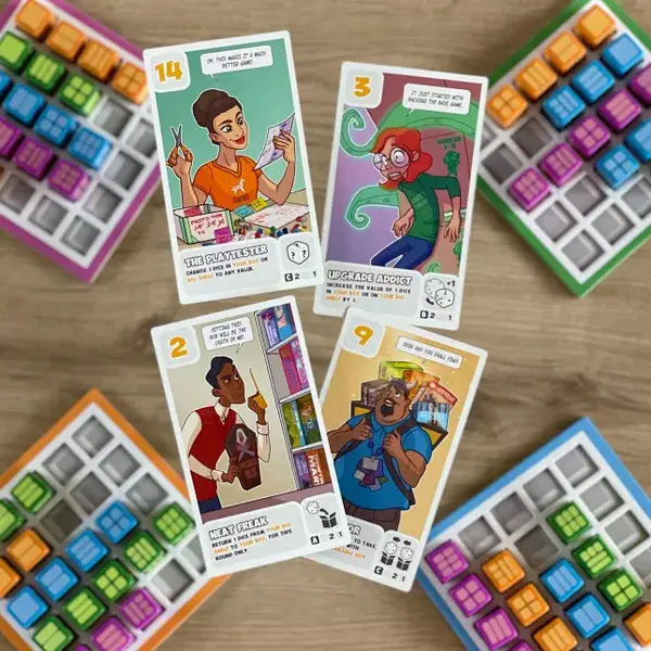 Quindi hai scelto un nuovo gioco, eh? O hai finalmente messo le mani ansiose su quell'espansione che stavi aspettando da un anno? Bene, ora inizia il vero gioco: come diavolo lo inserirai nel tuo nuovo scaffale per giochi da tavolo in ordine alfabetico, coordinato a colori e divinamente realizzato? Ebbene, cosa importa davvero? Probabilmente rimarrà comunque lì per i prossimi sei mesi, ouch, scusa, troppo reale? Allora andiamo avanti... In Shelfie Stacker, i giocatori competono per accumulare la più illustre collezione di giochi da tavolo, riempiendo accuratamente il loro scaffale con i loro acquisti più recenti. Il gioco si svolge nel corso di 7 round. Ogni round, gruppi di 3 dadi vengono lanciati casualmente e disposti in pile. Questi dadi rappresentano gruppi di giochi da tavolo. Dalla loro mano di 8 carte azione, i giocatori devono selezionare 1 carta da giocare a faccia in giù. Queste carte non solo determineranno l'ordine del turno, ma forniranno anche un'abilità una tantum per aiutare i giocatori a impilare meglio il loro scaffale. Esistono regole specifiche su come posizionare i dadi negli scaffali dei giocatori, quindi è necessaria un'attenta pianificazione. Alla fine dei 7 round, vince il giocatore con lo scaffale migliore!
