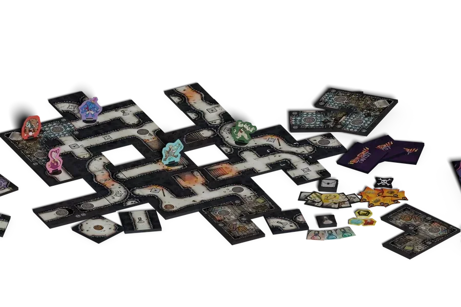 Dungeon Twist è un dungeon crawler tattico a turni con regole semplici, pedine senza testo e una grande profondità strategica. Una banda di ladri discutibili vaga attraverso il Dungeon Mutevole, un labirinto procedurale pieno di bottino, vicoli ciechi e pericoli fastidiosi. Inganna i tuoi avversari, prendi il Tesoro... e uscirne vivi!