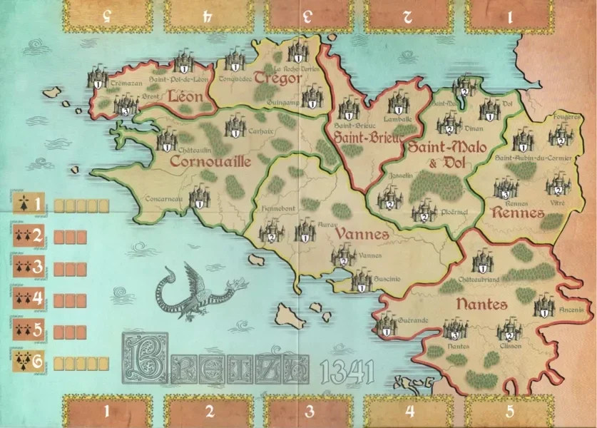 Breizh 1341 è un gioco di carte tra due giocatori, uno al comando dei Franco-Bretoni di Carlo di Blois e l'altro al comando degli Anglo-Bretoni di Giovanni di Montfort. Il gioco si svolge in una serie di turni, durante i quali ciascuna fazione esegue azioni militari e diplomatiche simili a quelle comuni nel XIV secolo. Anche i personaggi storici influenzano l'andamento del gioco. I nobili devono essere radunati per sostenere le proprie rivendicazioni, le truppe devono essere reclutate e successivamente condotte in battaglia o inviate ad assediare i castelli. Dopo anni di scontri, il giocatore che controlla più territori, castelli e sostenitori diventerà il nuovo Duca di Bretagna!