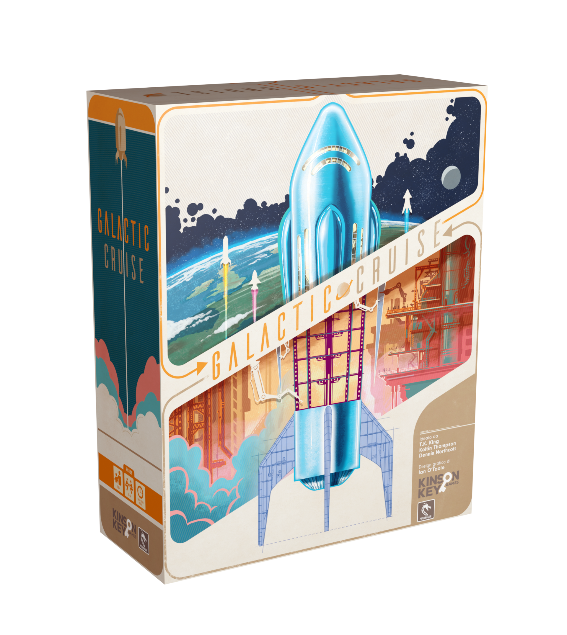 Benvenuto a Galactic Cruise, la prima compagnia a offrire crociere di lusso nello spazio! Come Supervisore, il tuo compito sarà costruire navi, soddisfare i passeggeri e far prosperare l’azienda migliorando la rete, sviluppando tecnologie e ampliando il team. Ma attenzione: è una gara per diventare il nuovo CEO! Ogni turno, potrai piazzare lavoratori per svolgere azioni, lanciare navi o richiamare il team per ottenere bonus. Dovrai ottenere progetti, costruire navi, attrarre ospiti e controllare il mercato delle risorse, il tutto mentre completi gli obiettivi aziendali per guadagnare punti vittoria.