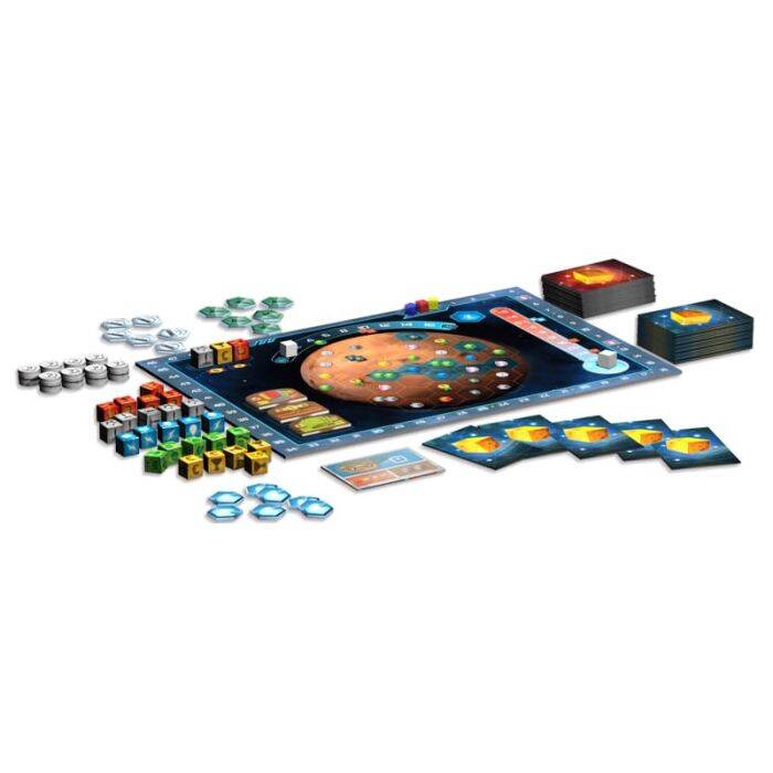 - Gioca carte, attivale, ottieni nuovi dadi Risorsa e colonizza Marte.