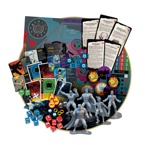 Nel gioco da tavolo solitario Batman: The Dark Knight Returns, vesti i panni del "più grande detective del mondo", che è stato richiamato dalla pensione in una Gotham City grintosa. Fai tutto il possibile per respingere un'ondata inarrestabile di spietati mutanti, poliziotti e giornalisti che cercano di farti fuori. Invece del tradizionale aumento di livello, questo è un gioco di logoramento. Un vecchio Batman cerca di sopravvivere a un'ultima sfida, affrontando vecchi e nuovi cattivi – come Due Facce, Billy Berserk e il Joker – e persino il suo alleato più potente, l'Uomo d'Acciaio in persona.
