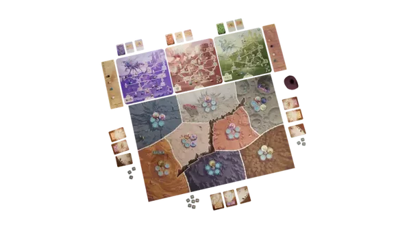 Durante il gioco, i giocatori si spostano in deltaplano tra la mappa dinamica e le plance modulari dei Colossi, gareggiando per raccogliere preziose uova, far schiudere i neonati e superare in astuzia i rivali. Le tue unità sono la risorsa più vitale, poiché ogni posizionamento e movimento è fondamentale. Invia i tuoi inviati nelle città per ottenere benefici e influenza per la tua tribù, oppure falli scivolare nelle lande desolate sottostanti per competere per le uova che i Colossi depongono durante i loro vagabondaggi. Man mano che la mappa si riempie di uova, la tensione aumenta. I neonati si schiudono e i giocatori si scontrano in astute sfide di posizionamento e gioco di carte, senza distruzione né attacchi diretti: solo manovre tattiche intelligenti per ottenere la vittoria.