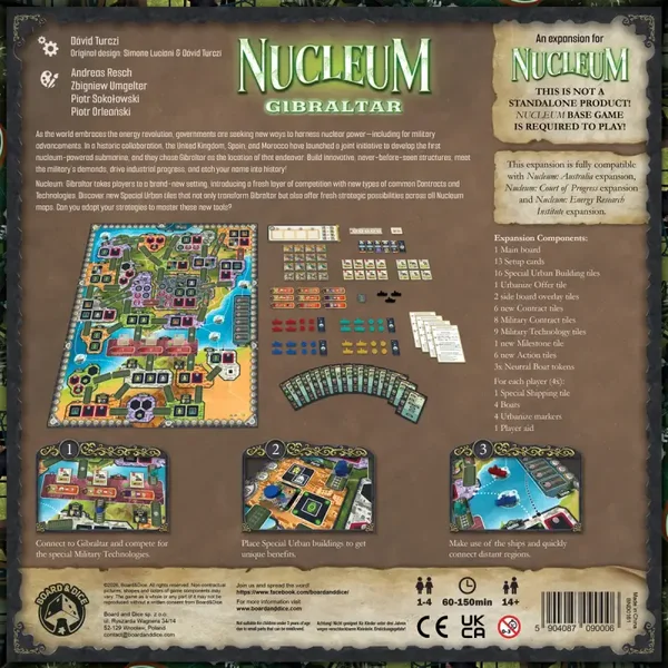 L'espansione porta i giocatori in un'ambientazione completamente nuova. Introducono anche nuovi edifici urbani, contratti e tecnologie. Collegatevi a Gibilterra per completare i contratti militari e accedere a tecnologie militari esclusive, oltre alle otto tecnologie standard del tabellone degli esperimenti.