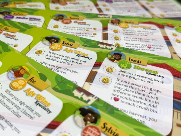 Cos'è il piazzamento condiviso dei lavoratori? Tutti i giocatori al tavolo possono giocare carte azione per spostare i lavoratori nel vigneto. Non giochi con un personaggio specifico, ma scegli come guidare al meglio tutti i lavoratori! Potrebbero esserci dei turni in cui prepari un'azione imminente eccellente... Ma sarai il primo a sfruttarla? Tieni d'occhio i tuoi compagni di gioco e trova il momento migliore per mettere in mostra la tua competenza nella vinificazione!