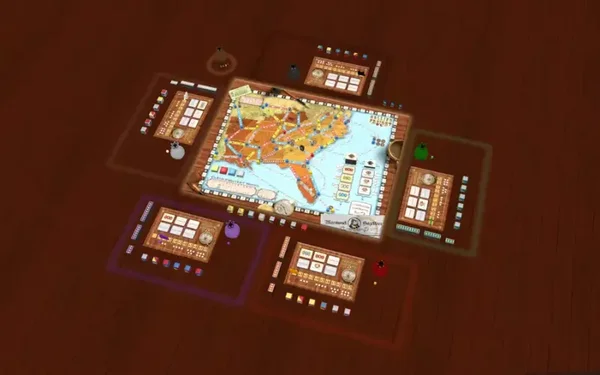 L'ampio tabellone colorato a due facce presenta due mappe. La mappa degli Stati Uniti occidentali, risalente all'epoca della corsa all'oro in California, è progettata per 2-4 giocatori. Con molte tratte a doppio binario, questa mappa consente ai giocatori alle prime armi di pianificare efficacemente le proprie reti e massimizzare le consegne. La mappa del sud-est degli Stati Uniti, che raffigura la fine del XIX secolo, presenta solo tratte a binario singolo, significativamente interconnesse. Questo offre opzioni strategiche più avanzate ed è pensato per 3-5 giocatori esperti.