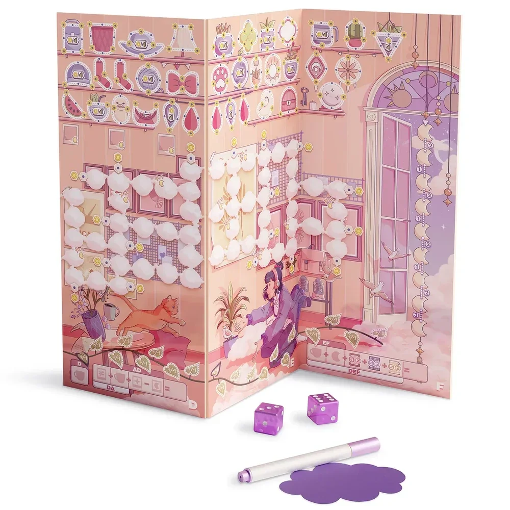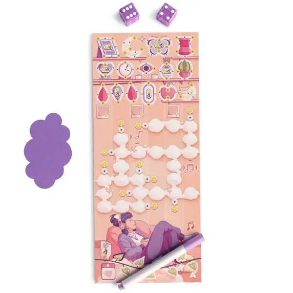Daydream è un gioco competitivo, roll&write, molto “tranquillo”, senza alcuna interazione con gli altri giocatori, dalla grafica rasserenante.