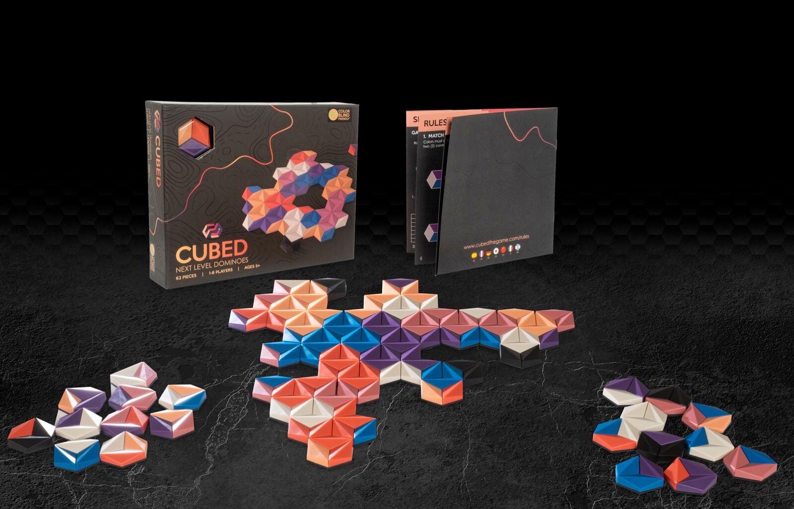 Un approccio moderno al classico gioco del domino, con un gameplay ancora più strategico grazie all'utilizzo di tessere esagonali tricolori volumetriche.