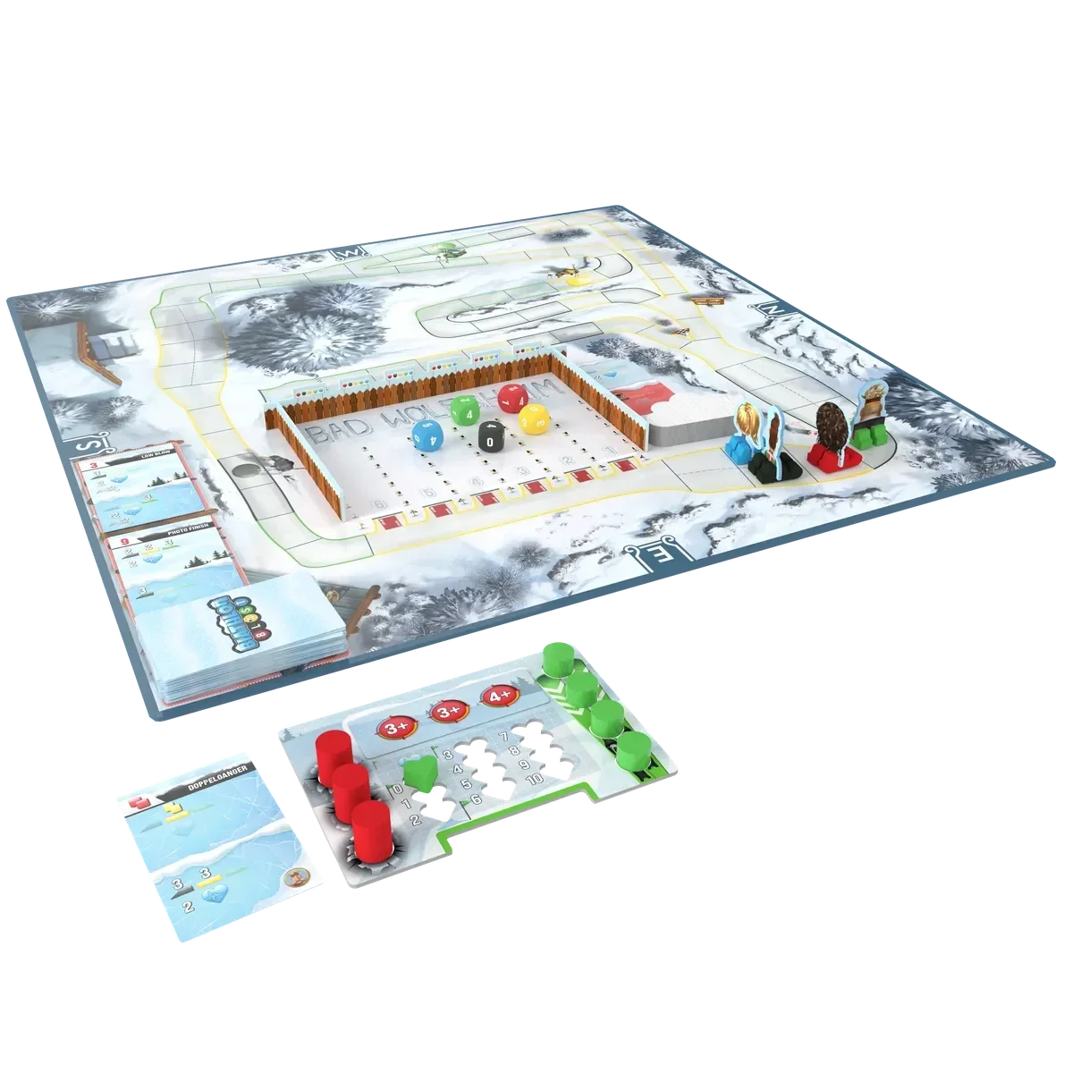 Il gioco offre scenari sempre diversi grazie alle numerose configurazioni possibili: due piste con tracciato corto e lungo, sei coppie di sci con vantaggi specifici e otto nazioni con biatleti dotati di abilità uniche. Il sistema di carte a doppia azione definisce ordine di turno, movimento, gestione del vento e funzionamento del mazzo, creando un flusso di gioco immediato ma ricco di scelte significative.