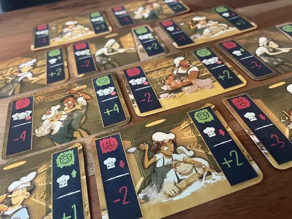In caso contrario, il fornaio che ha contribuito di più guadagnerà reputazione. Una volta che 5 ordini sono falliti o 5 ordini sono riusciti, il fornaio con il valore più alto rimasto in mano vince la partita. Tuttavia, se il gruppo fallisce 5 ordini, tutti i fornai con una reputazione negativa vengono licenziati prima di ottenere il punteggio!