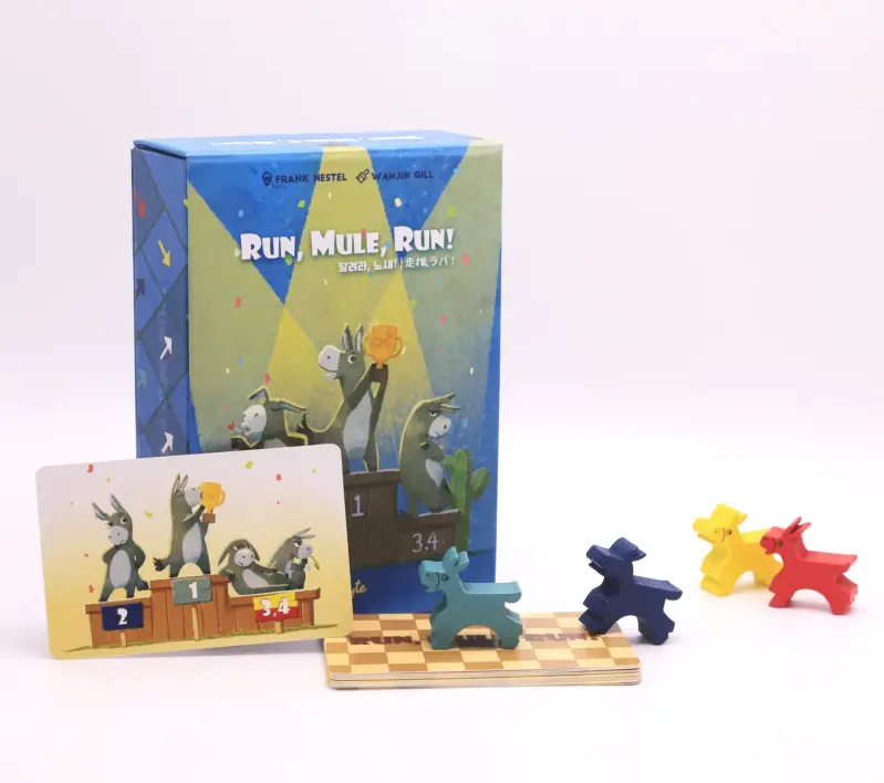 "Corri, Mulo, Corri!" è un gioco in cui 4 muli si sfidano per vincere il trofeo. Leggi e usa le frecce colorate con saggezza per vincere!