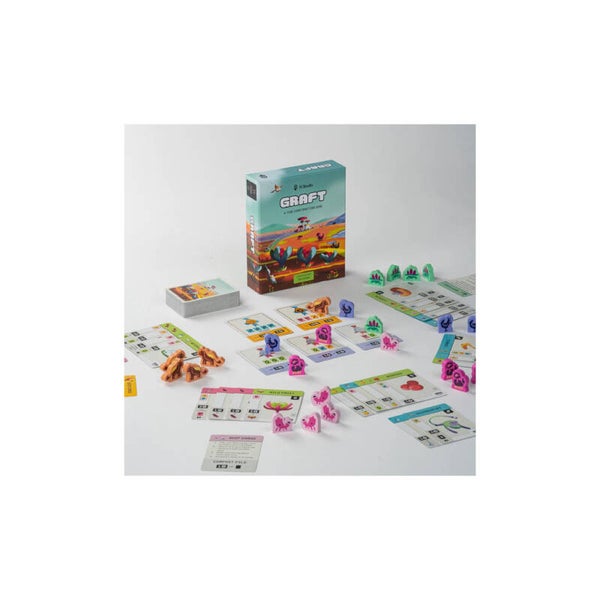 Graft è un gioco di carte a draft in cui 3-5 giocatori gareggiano per raccogliere set di beni di valore e spedirli a Zenith.