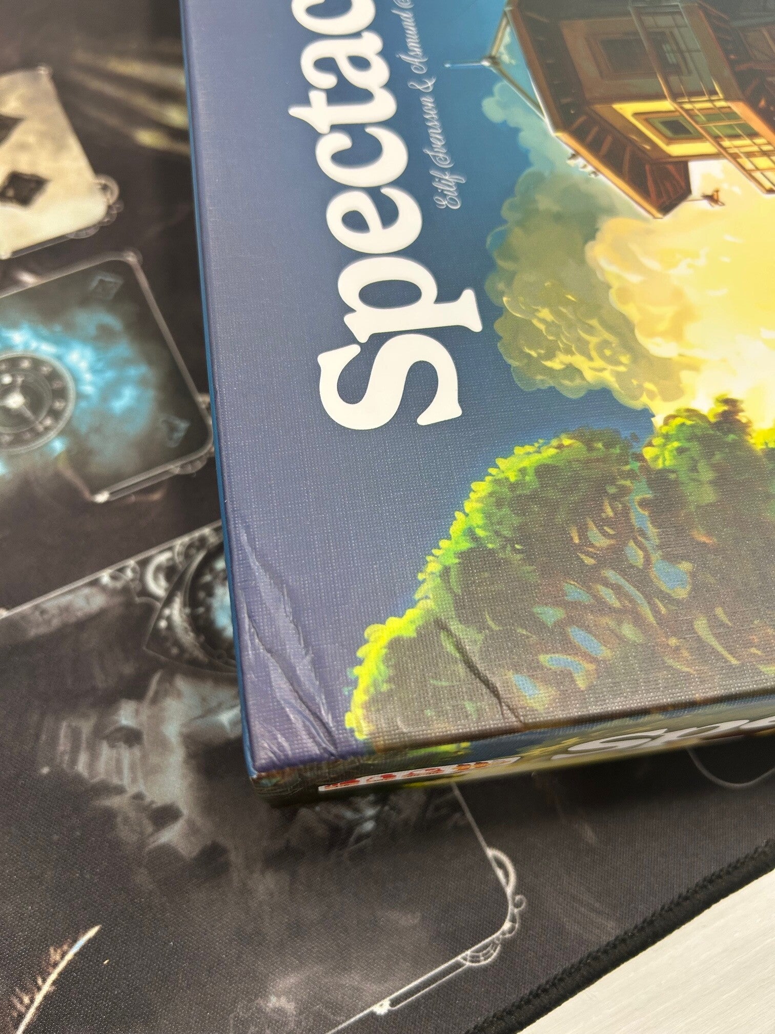 Spectacular offre il gioco simultaneo e garantisce l'interazione tra i giocatori, poiché le decisioni dei tuoi avversari influenzeranno quali tessere e dadi sono disponibili per te. Il gioco include anche plance giocatore asimmetriche (sul retro).